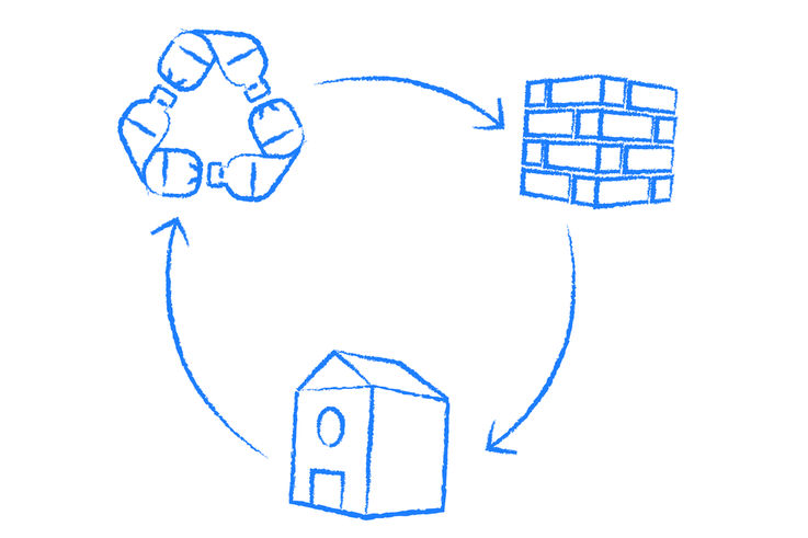 塑料垃圾被用来为学校建筑制造建筑用砖。其为儿童创造宜居的建筑和新的教育机会。
